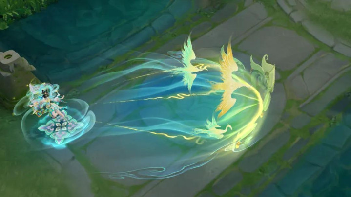 技能特效设计的很有特色,一技能特效是粉色法阵和小黑猫,二技能特效是水手月亮法阵,大招是巨大金色法阵流星弯月翅膀,上线至今已经超过800多天,可惜一次都没有返场过。