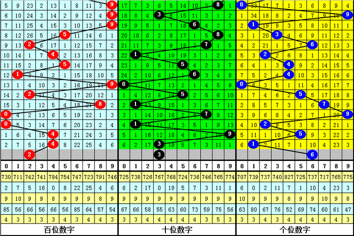 跨度判断:连续10期跨度开出012路比为5:2:3,012路跨度基本持平,跨度最近3期遗漏值分别为19期、5期和4期,本期预计跨度遗漏值走大,防温冷跨度解冻,参考跨度4。