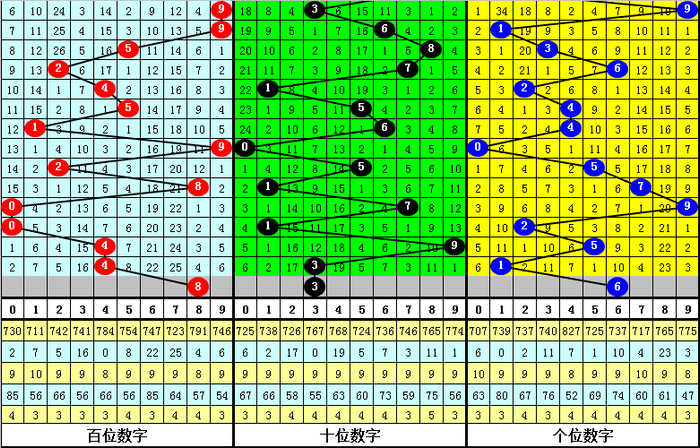 百位号码奇偶比为2:3,偶数号码热出,本期预计偶数号码再出;大小比为4:1,大号走势较热,本期防止大号再次出现。