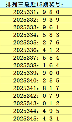 一、体彩排列三第2025345期奖号为431,该号码历史上直选出现了6次,组选出现了54次。