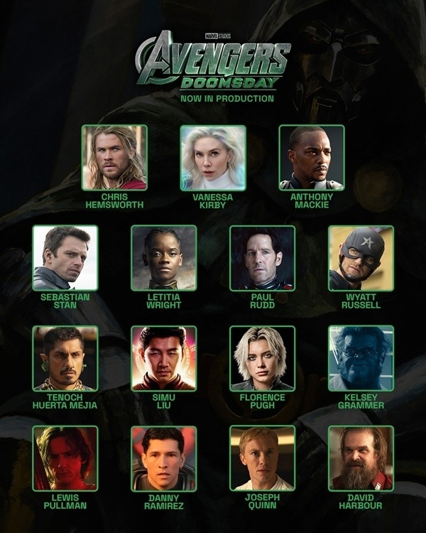 除了小罗伯特・唐尼和史蒂夫・罗杰斯回归外,官方此前还透露了27名演员/角色,包括老版《X战警》的X教授、万磁王、镭射眼、魔形女等加入情怀拉满,洛基、雷神也回归,另外还有新神奇四侠、美队、黑豹等人。